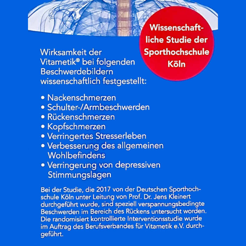 Das Einzigartige an der Vitametik ist, dass mit einem kurzen, schnellen Druckimpuls an der seitlichen Halsmuskulatur Ihr gesamter Körper angesprochen wird.